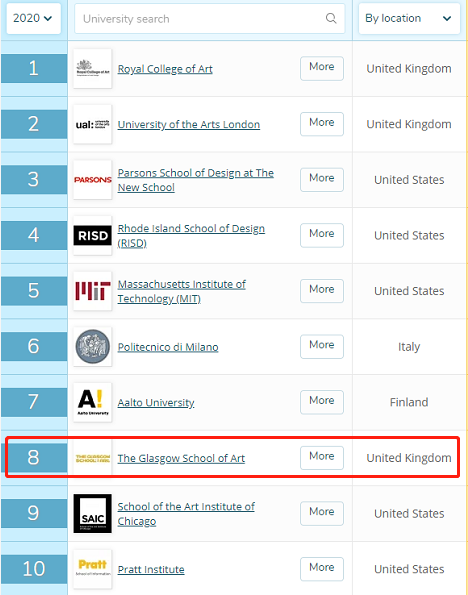 在最具權(quán)威性的QS世界大學排名中,GSA名列藝術(shù)與設(shè)計第8,英國第3,僅次于皇家藝術(shù)學院和倫敦藝術(shù)大學,被列為英國頂級專業(yè)視覺藝術(shù)機構(gòu),是一所名副其實的世界頂級藝術(shù)類院校。在這里誕生了許多世界著名的藝術(shù)家、設(shè)計師和建筑師。