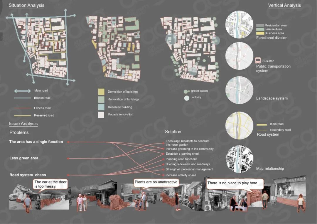 從自身角度出發(fā)來提出場(chǎng)地缺陷,再來對(duì)癥下藥的解決問題。同時(shí)我的學(xué)校有著悠久的歷史,在時(shí)代的發(fā)展中,場(chǎng)所的空間規(guī)劃也是在不斷改變的,這種厚重的歷史感和豐富的變化是十分吸引人的。