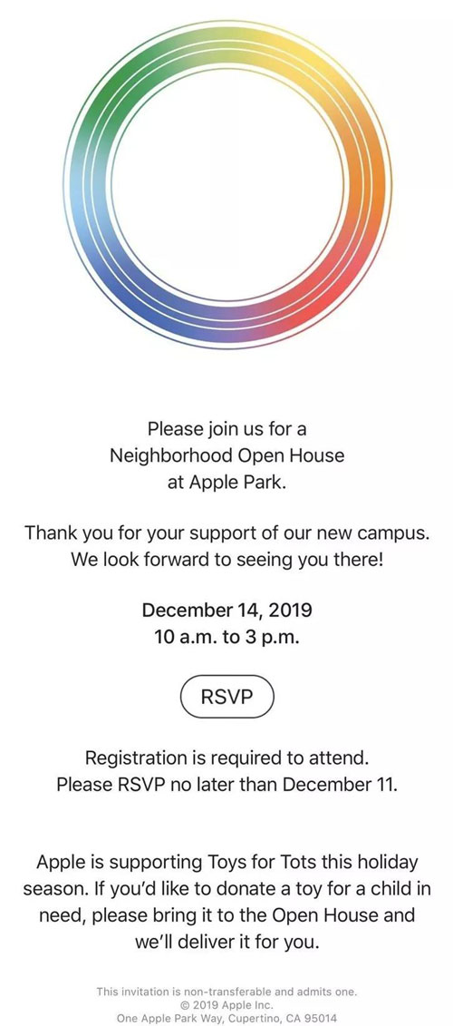 本月14號(hào),蘋(píng)果公司將在Apple Park(蘋(píng)果公園),為庫(kù)比蒂諾當(dāng)?shù)鼐用衽e辦一次開(kāi)放日活動(dòng),這也是Apple Park首次向市民開(kāi)放。