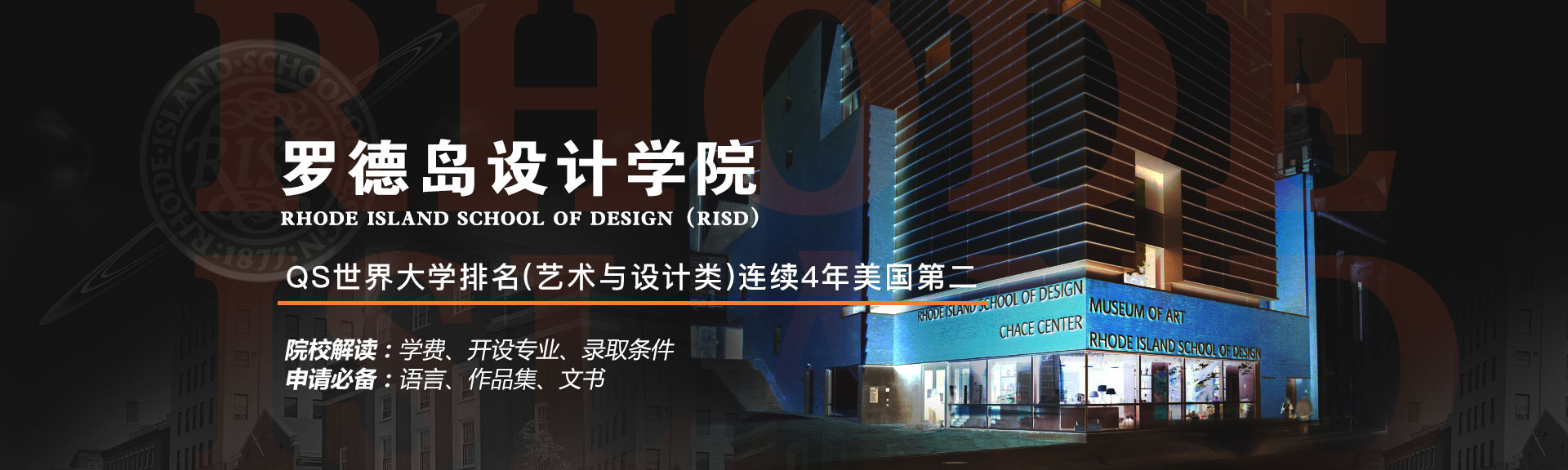 羅德島設(shè)計學(xué)院是一所集藝術(shù)與設(shè)計學(xué)科為一體的世界頂尖設(shè)計學(xué)院,各專業(yè)都位于領(lǐng)域前端,它是美國藝術(shù)設(shè)計學(xué)院的先驅(qū),受獨立藝術(shù)設(shè)計學(xué)院協(xié)會(AICAD)認證,在世界上都享有盛名。